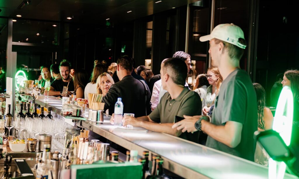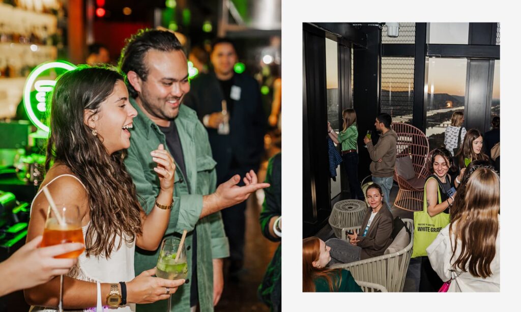 Das Thema „Musik“ zog sich wie ein roter Faden durch den gesamten Abend: von Armbändern, die je nach Musikgenre die Farbe wechselten, über thematisch benannte Cocktails und Spotify-Neonlichter bis hin zu Kappen und Cupcakes, die jeweils einem Spotify-Song zugeordnet waren. Ein besonderes Highlight war der Fotospiegel, mit dem die Gäste den Abend festhalten und ihr Bild als Erinnerung mit nach Hause nehmen konnten.