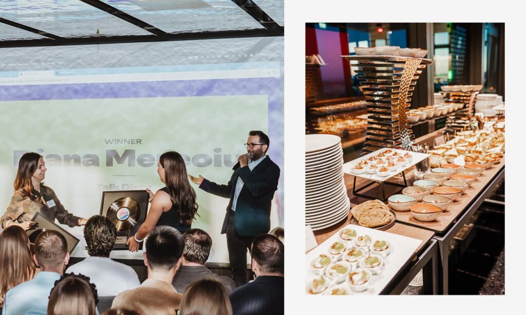 Drei Mitglieder unseres OMNES-Teams begleiteten die Veranstaltung von Anfang bis Ende und sorgten für einen reibungslosen Ablauf. Dazu gehörten der Technik-Check, die Registrierung der Gäste, die Organisation und Platzierung der Dekoration sowie des Brandings – ebenso wie die Kommunikation mit dem Location-Management.