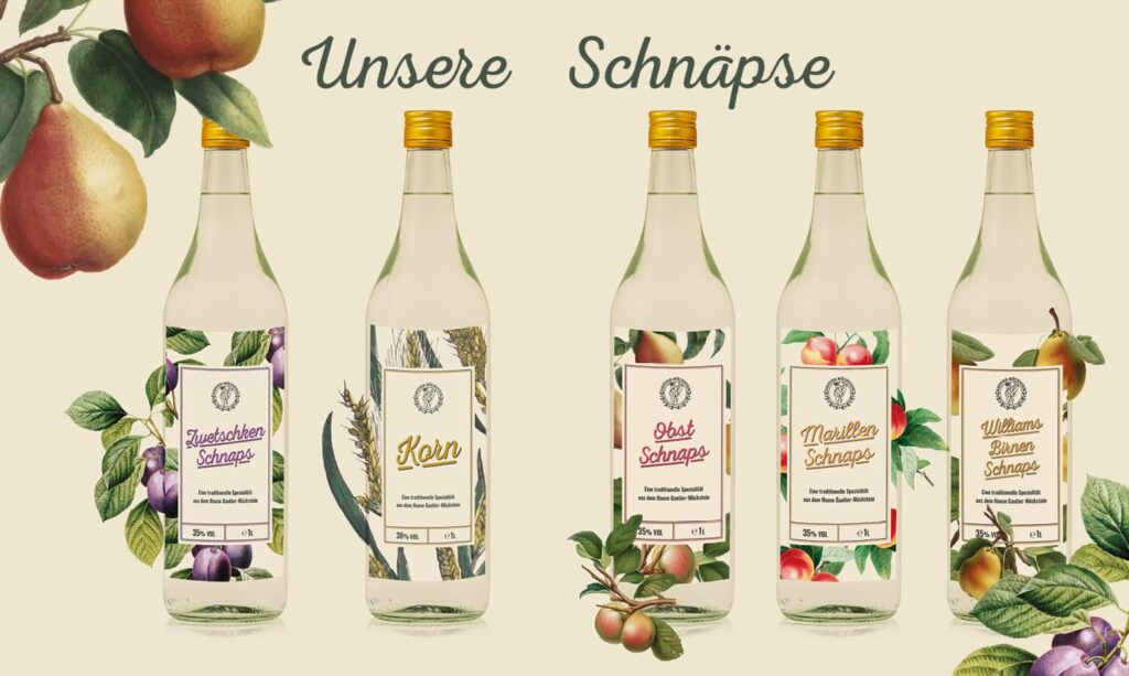 Für neue und bestehende Produktlinien entwickeln wir das visuelle Erscheinungsbild – vom Etikett bis zum Verkaufsfolder. Besonders bei der neuen Likör-Serie stand ein modernes, reduziertes Packaging im Mittelpunkt, das die Qualität der Inhalte unterstreicht und gleichzeitig die lange Tradition des Hauses sichtbar macht.