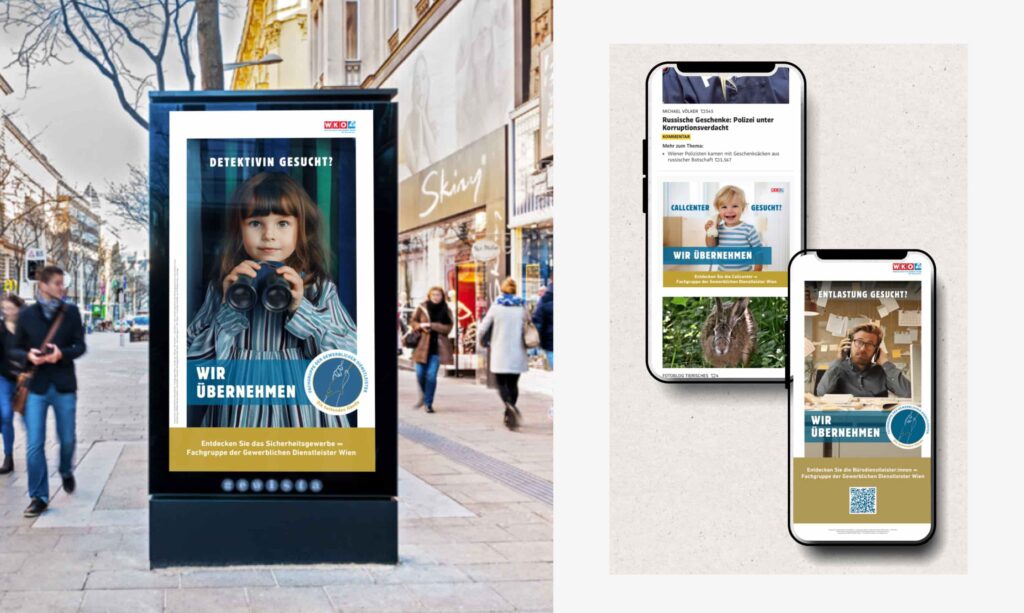 Wie bringt man neun völlig unterschiedliche Berufsgruppen unter einen kommunikativen Hut? Mit einer klaren Idee, die verbindet: „Wir übernehmen“ – die Image- und Awarenesskampagne der Fachgruppe Wien der gewerblichen Dienstleister:innen zeigt, wie viel im Hintergrund passiert, damit es im Vordergrund rund läuft. Sie alle übernehmen Verantwortung, Struktur, Kommunikation und Sicherheit für andere. Und genau das machen wir sichtbar.